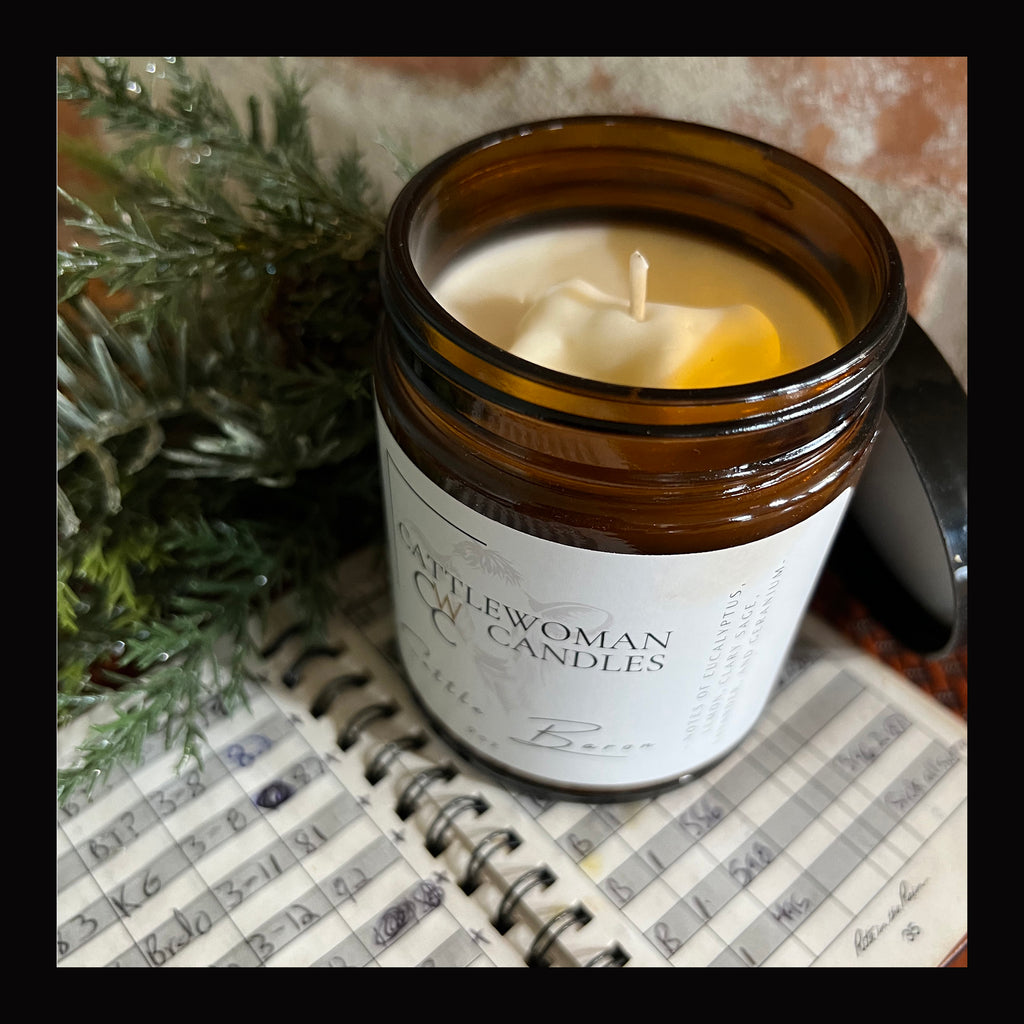 These little gems are the finishing touch for a gift box, "little something for me" or maybe as a "just thinking of you" gesture. With scents to arouse your thoughts and make you dream of home on the ranch, baking with a loved one or nestling under a warm blanket together after a long day of work. Custom scent designs, hand-poured locally by a fellow farm/ranch wife these mark all the "must have" boxes for me. Adorned with a wax calf mold you will need to order two; one to display and one to enjoy.